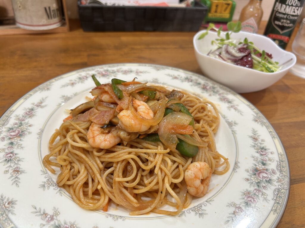 自分で作るケチャップのナポリタンとはちょっと違う味で、
