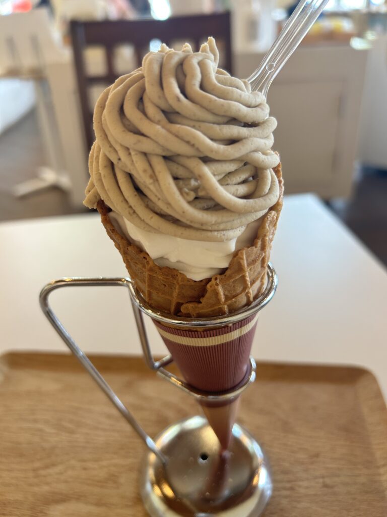 園内にはカフェ「栗と空」があり、地元素材を使ったスイーツが楽しめます。
